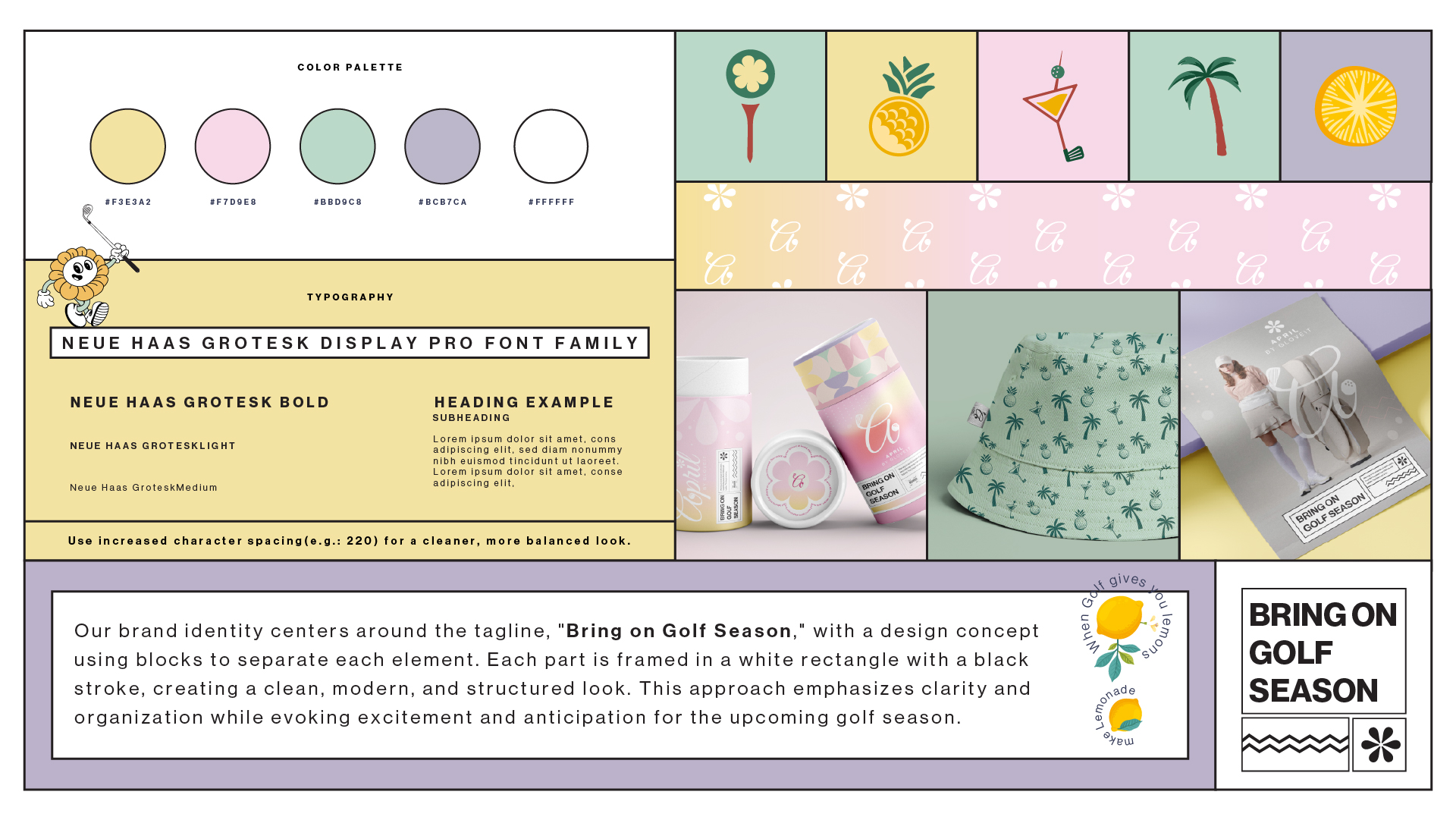 I developed the brand from scratch including the brand name, logo and logo mark, color palette, typography, tone of voice, and a concise brand guideline. The logo merges the letter A with a golf club in motion and a ball, while the flower inspired logo mark symbolizes spring, renewal, and growth capturing the energy and optimism of a new golf season.